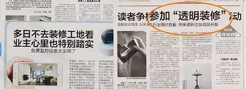 客户只需将“透明装修APP”安装到手机上,将硬件设备放在新房工地,便可通过随时随地查看工人施工细节、材料进场情况、材料使用情况、施工工艺、施工流程等。