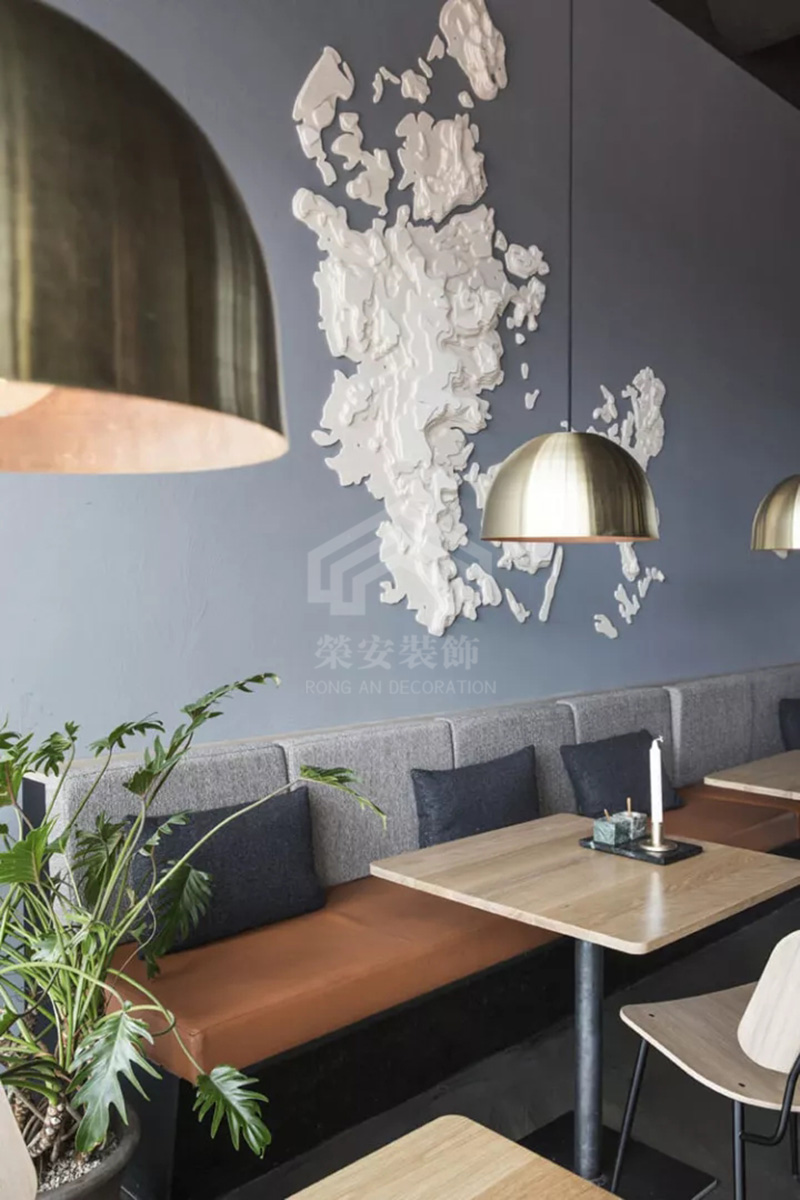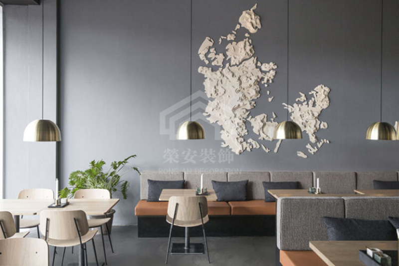 青岛荣安装饰工程有限公司。在装饰装修的工程质量上,严格的把控遵循。客户利益至上,并且在装修的进度上。一定不会耽误工期。今天要介绍的这个巴贝拉快餐店设计装修,就是一个环境优雅的范例。